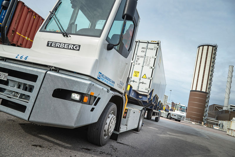 The Port of Helsingborg is working hard to become a fossil-free port and strengthen its position as Sweden's most sustainable port. Their fleet of 25 passenger cars is electric, the giant dockside cranes are electric, and at the end of 2021 four new electric Terberg terminal tractors started operation. All these efforts are to reduce greenhouse gas emissions.
