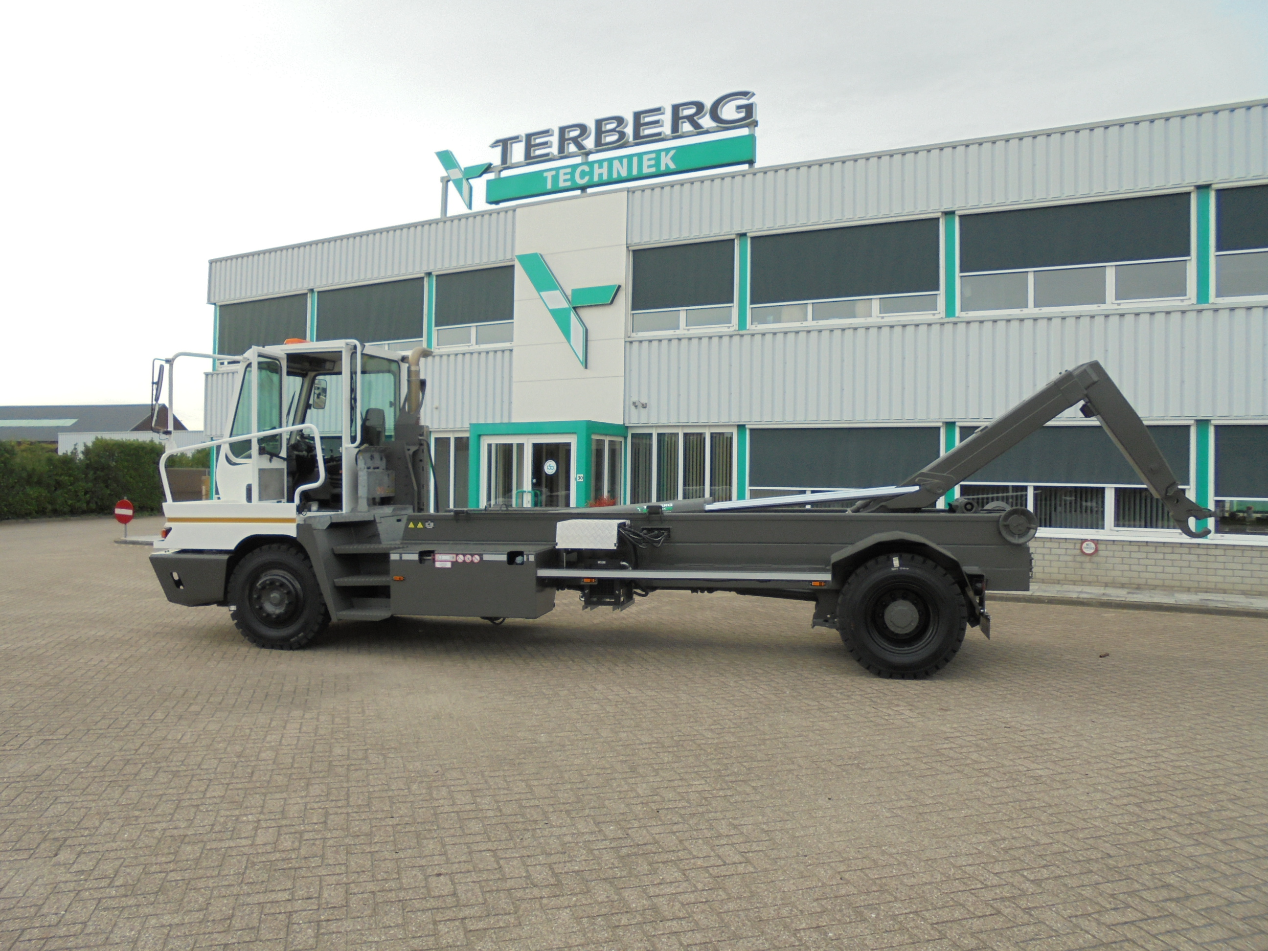 Gereed voor aflevering een Terberg 4x2 Container Carrier voorzien van een nieuw 30 tons haakarmsysteem van VDL Container Systems bv