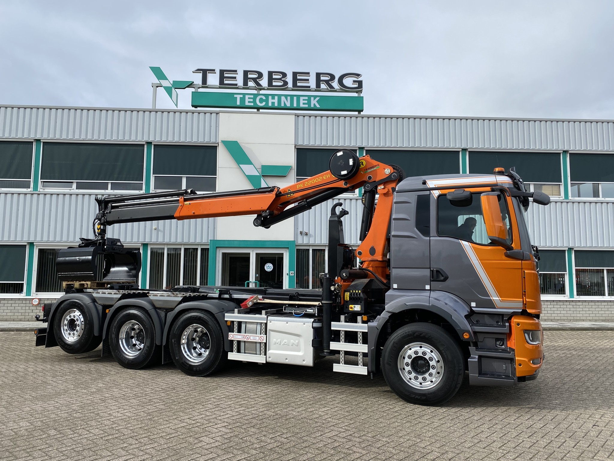 Trommelen uit Brunssum heeft deze mooie MAN TGS 35.510 8x4-4 in ontvangst genomen voorzien van een VDL 25 tons haakarmsysteem en een Palfinger PK 22002 EHC autolaadkraan